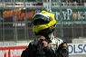 We watched some of qualifying then met Doug and Brad in the pits. I changed shirts into a Bridgestone shirt so I can look the official part, and we both got Bridgestone hats. CC Amanda had the flag and was the 'director' of the award. We waited and watched the Champ Car scoring board. Justin Wilson nudged out AJ on the last lap or two. So CC Amanda ran down and directed us. When Justin got out of the car, he took off his helmet and hans, and we walked to the opposite pit wall. We stood up on the wall, and I was on Justin's right. I shook his hand, told him congratulations, and we unfurled the flag. It was awesome, there were so many photographers and video guys! I felt like an almost-hero! We stood for a while, and then we jumped down and it was just Justin for a bit. A stills photographer was asking Amanda how to spell our names and was dicatating it into his computerized camera. Then we walked over to the media center and got to sit in to the qualifying interviews. Amanda almost got run over by Paul Newman on a scooter! I got a small version of the pole flag signed by Justin after the media meeting.