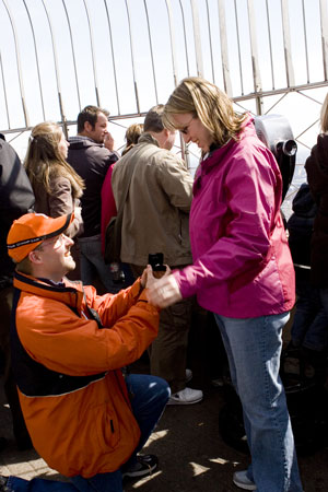 4-14-07 » Big time in the Big Apple! The annual but last NYC bus trip was great success, high five! The usual plan is to see the Auto Show, but this year I went up and got engaged to my sweetheart Amanda! At the top of the Empire State building even. After a criminally long wait to get up, it was worth it to pop the question. Amanda was sort of shocked since she did not think it would happen up there, after I asked if she just wanted to cut out of line and leave before reaching the top. There was a lot of hugging kissing and some crying (in a good way) then. (More photo gallery)
